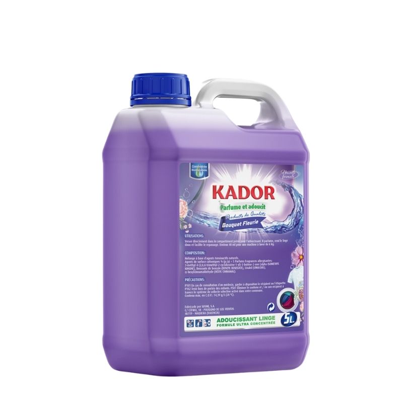 L’Adoucissant KADOR Bouquet Fleuri en format économique de 5 litres est l’essence même de la douceur et de la fraîcheur florale. Sa formule de qualité supérieure enveloppe vos textiles d’un parfum envoûtant de fleurs, créant une expérience sensorielle à chaque lessive.